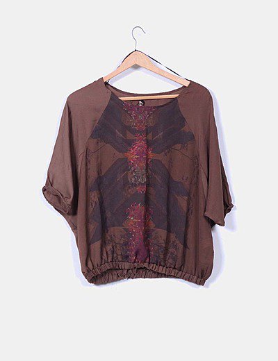 BershkaBlouse marron imprimé oversize